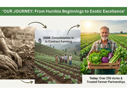 Though the company has been in operation for over 15 years, it consolidated its presence in the contract farming of vegetables like Lettuce, Red Cabbage, and Celery etc in October of 2008. The total growing area is over 250 acres, spread around the Nilgiris. With an experienced farmer base, trained manpower and Good Agricultural Practices, Green Earth is one of the oldest companies in Nilgiris involved in contract farming. Farmers are well experienced in cultivation of all kinds of quality exotic vegetables.